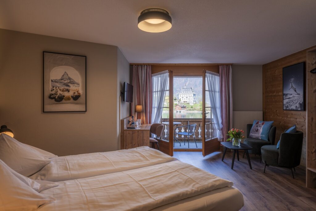 In unseren Rasta De Luxe Einzel- und Doppelzimmern haben Sie die beste Sicht auf den Brienzersee und die Seebucht. Alle Zimmer sind im heimeligen Chalet-Stil eingerichtet und befinden sich im 2. Stock. Der grosszügige Balkon bietet Platz zum Verweilen.